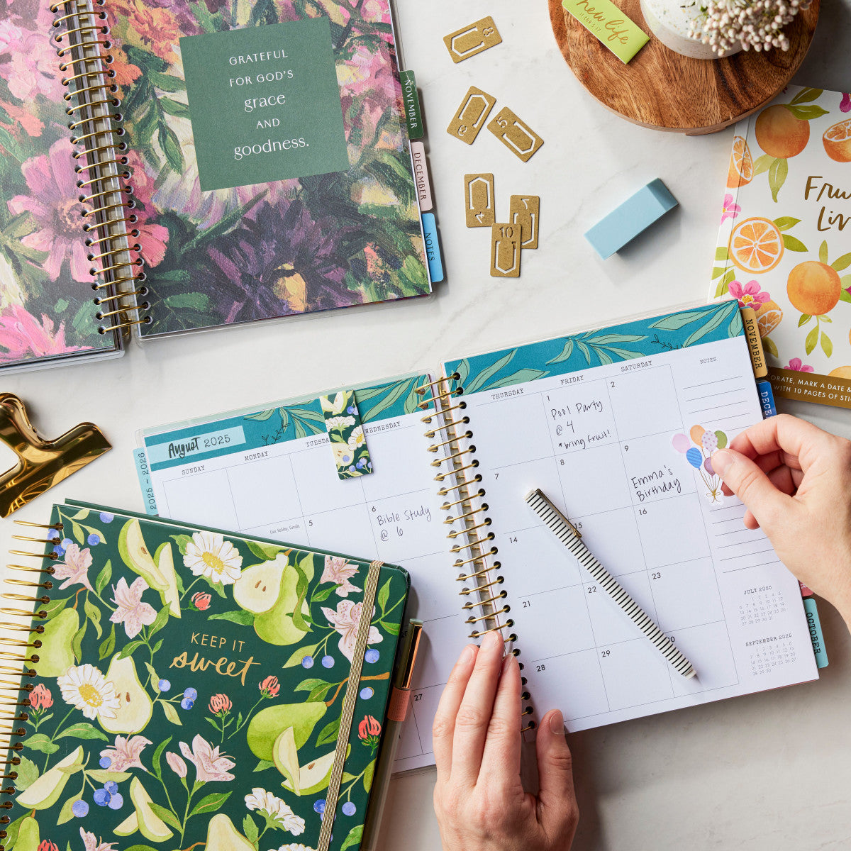 This calming, beautiful planner features hand-lettered Bible verses on each monthly tab page. Each Scripture is specifically chosen to encourage you as you manage your busy schedule and navigate life's ups and downs throughout the year.