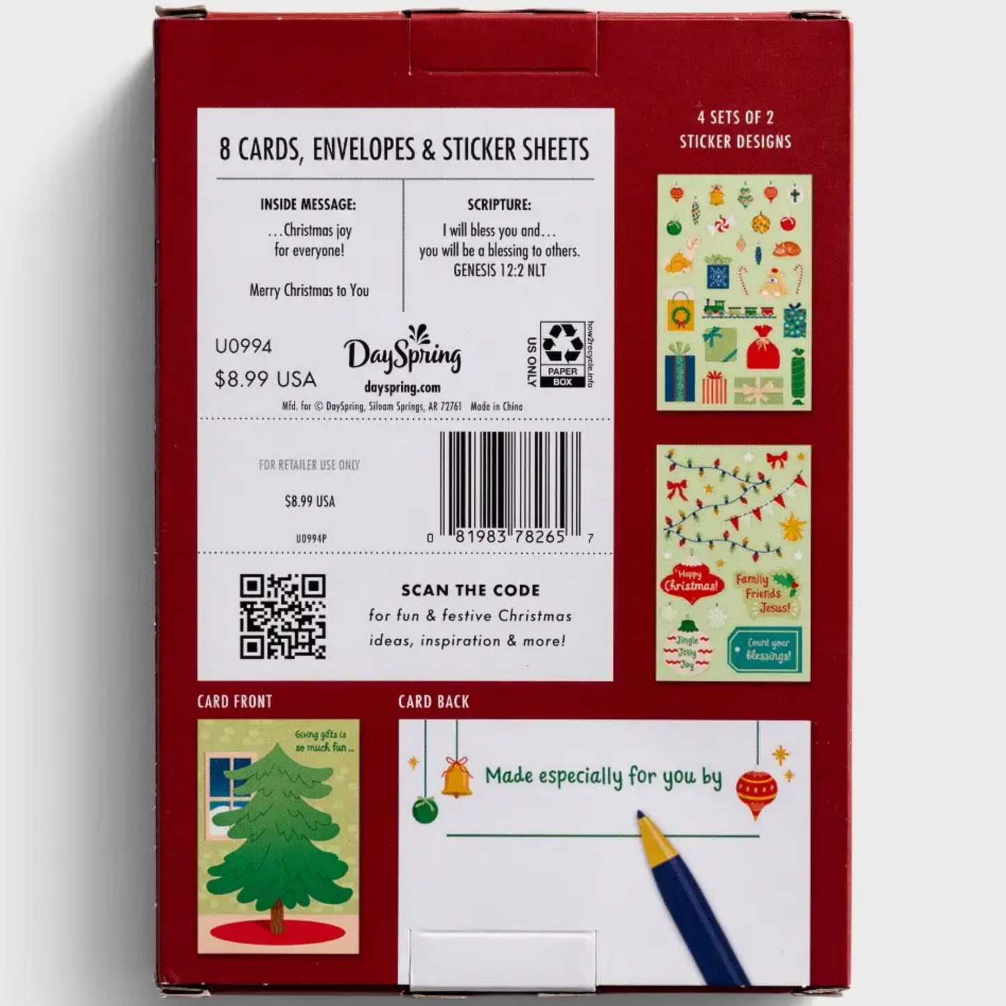 Make sending Christmas cards an activity for the entire family to enjoy together with these DIY Christmas Tree Sticker Cards from DaySpring! With a bare Christmas tree featured on the cover and a sheet full of decorative stickers to use, kids will be able to deck the halls and customize the perfect card for their loved ones. Included is 8 cards, 8 sticker pages, and 8 coordinating envelopes.
