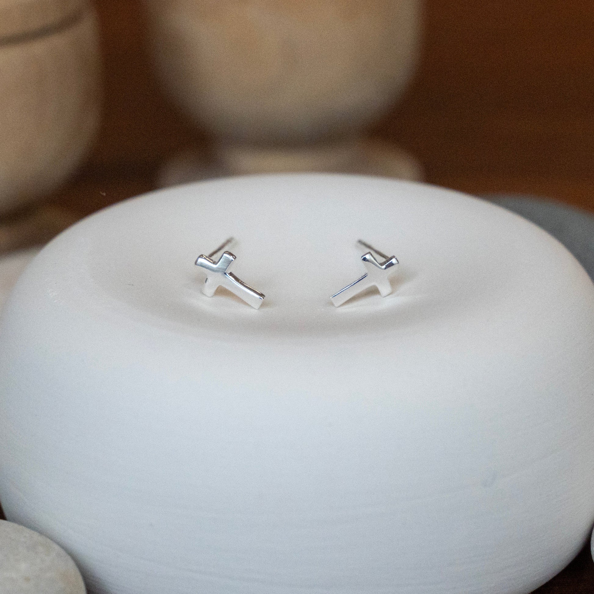 Mini Cross Earrings (925 Silver)