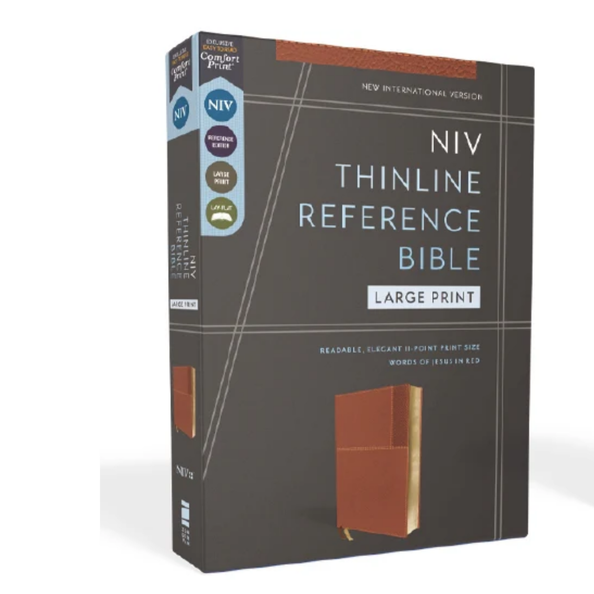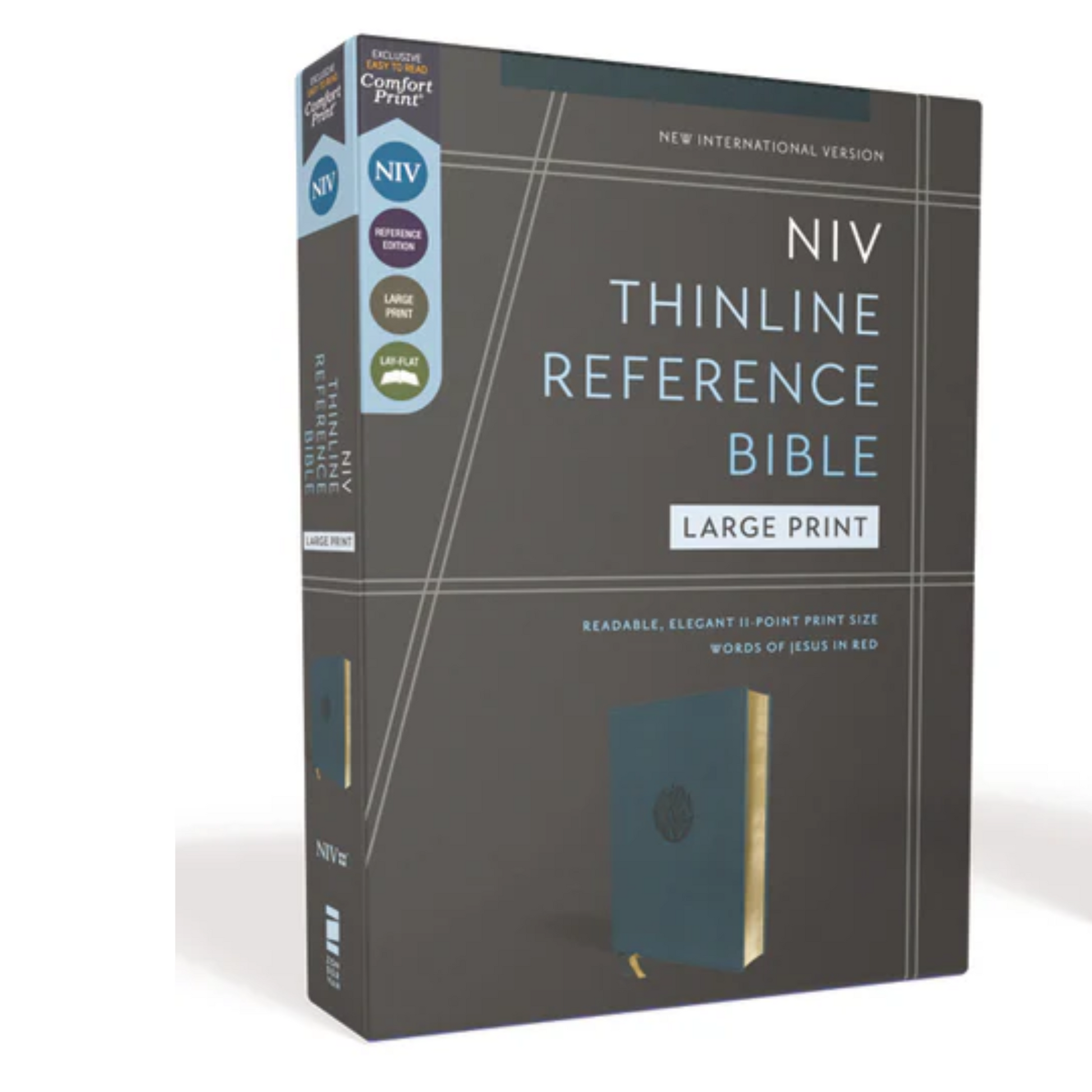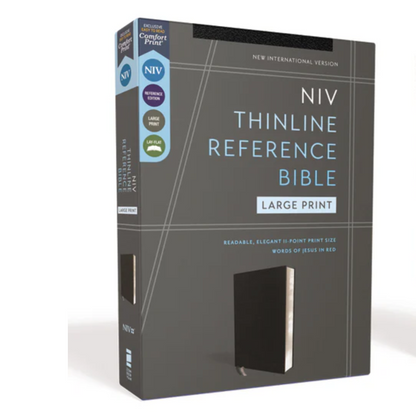 The NIV Thinline Reference Bible, Large Print captures the depth and beauty of the Bible, in a take-anywhere size. Containing a helpful center-column reference system while measuring less than an inch thick, it is the perfect resource to carry to work, travel, church, and Bible study for on-the-go access to God's Word.