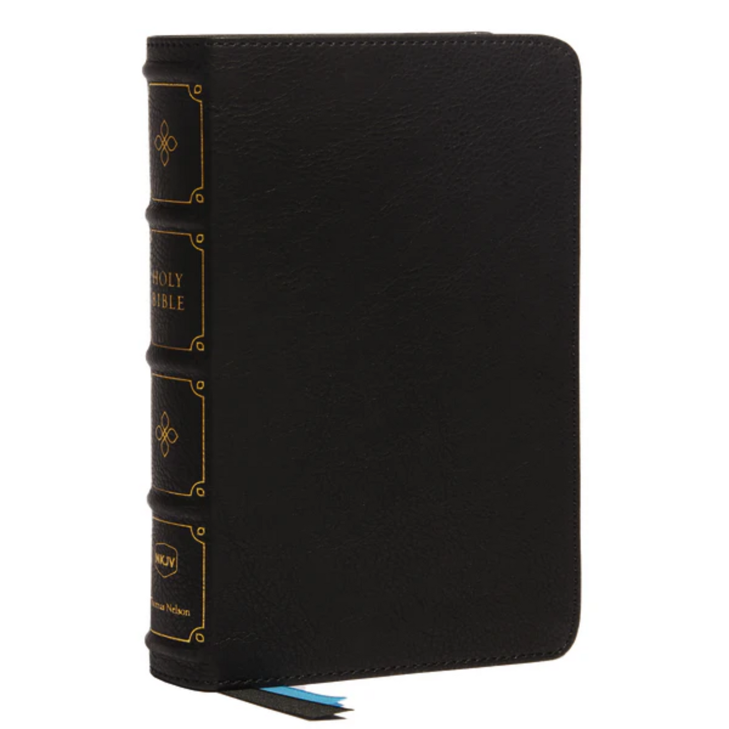 A small, hand-sized NKJV Bible designed with clear Scripture text and elegant materials to honor God’s Word.