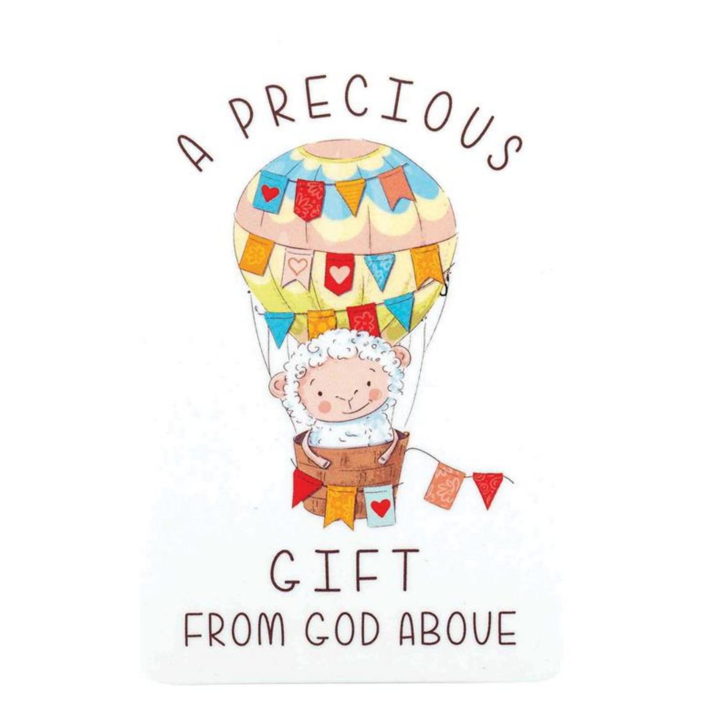 Keepsake pocket card is great as a bookmark. On front is an adorable baby lamb and balloon design with the words "A precious gift from God above." On back is "...¦wrapped in sweetness, joy and love."