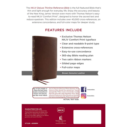 NKJV, Thinline Reference Bible, Genuine Leather, Brown
