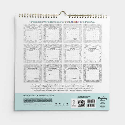 Peace in Every Moment Creative Coloring - 2026 Spiral Wall Calendar (U3395)