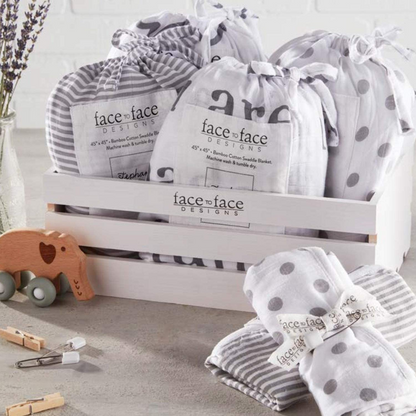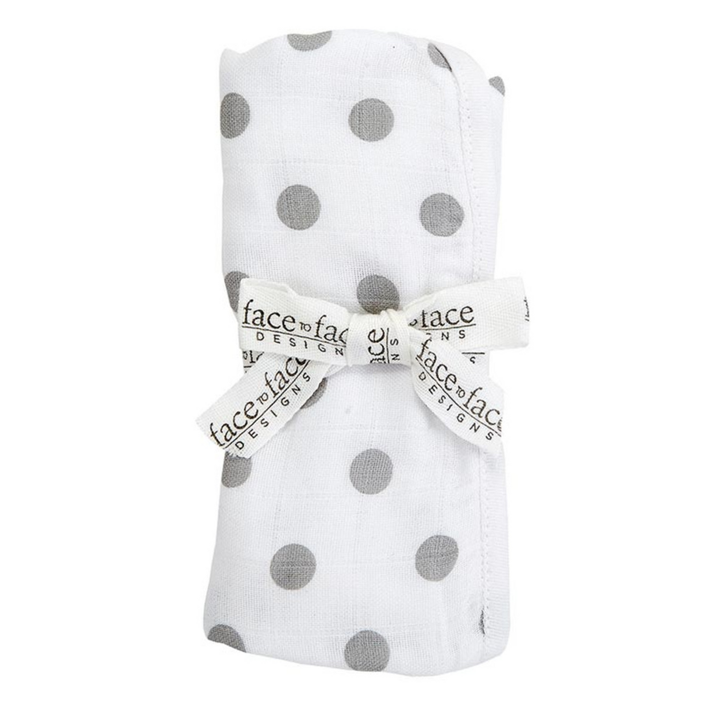 An essential for any mom, this 3-ply muslin burp cloth features cute grey dots on both sides and easily absorbs any mess.