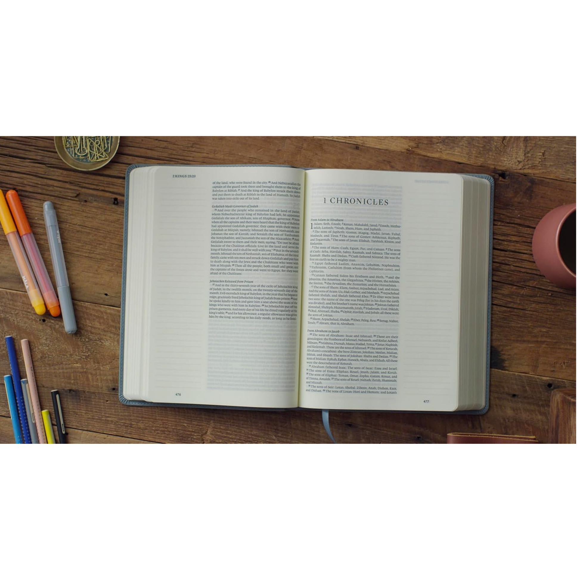 - Personal Bible Study Tool: Includes a 1-year reading plan and 2" ruled margins for writing reflections, prayers, and journal entries